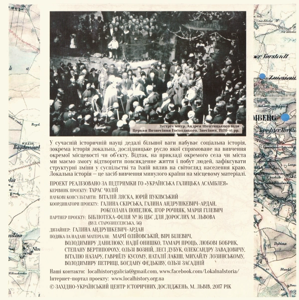 Подяка за надані матеріали: Марії Олійовській, Вірі Білевич, Володимиру Данилюку, Надії Онишко, Тамарі Проць, Любові Бобрик, Степану Вертипороху, Ользі Возній, Лесі Дубик, Олександру Завадовичу, Віталію Назару, Гавриїлу Кусому, Наталії Лакіш, Михайлу Лозинському, Володимиру Петриці, Богдану Федьківу, Ользі Засадній