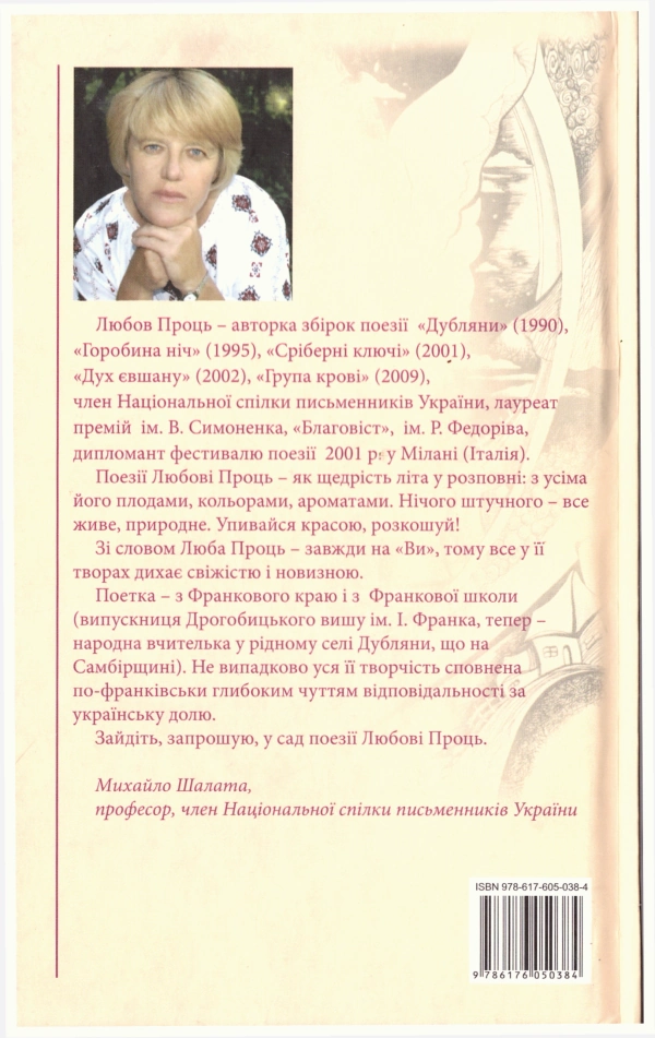 «...якщо полювання на світло продовжується, то триває і битва за світло». Сучасна українська поетеса Любов Проць у цій «битві» - в передній лаві. Нова поетична збірка ще більше увиразнює її активну громадянську позицію і високу художню майстерність.