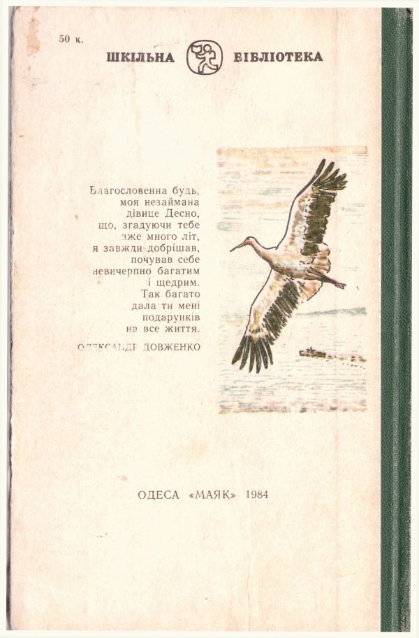 Відомості про видання: Тексти друкуються за виданням: Олександр Довженко. Вибрані твори. К.: Дніпро, 1971Вихідні дані: Одеса : «Маяк», 1984Опис: 161 с. : іл. ; 206 мм.Мова: українська.Країна: Українська РСР.Серія: Шкільна бібліотекаУДК: 82-3.161.2