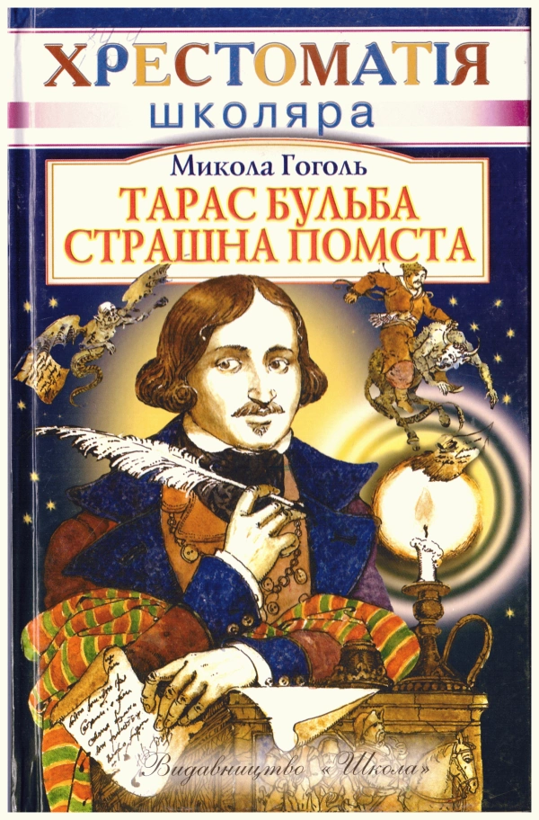 Відомості про видання: Текст друкується за виданням: Μ. Гоголь. Вибрані твори у п’яти томах. — X., Книгоспілка, 1929—1932 // Загальна редакція І. Лакизи, П. Филиповича. За стилістичною редакцією Μ. Зерова, А. Харченка. • Українські переклади звірено й уточнено з оригіналом за виданням: Н. В. Гоголь. Собрание сочинений в восьми томах. — Μ., 1984.Вихідні дані: Київ : «Школа», 2007Опис: 236 с. : іл. ; 206 мм.Мова: українська; оригінал: російська.Країна: Україна.ISBN: ISBN 966-661-611-4.Серія: Хрестоматія школяра : заснована 2000 рокуУДК: 82-3.161.2Примітка про читацьке призначення: Для середнього та старшого шкільного віку.Анотація: «Тарас Бульба» — поетична розповідь про далеке минуле України. Письменник яскраво змалював Запорозьку Січ, правдиво відтворив побут, звичаї козацтва тих часів. «Страшна помста» — одна з повістей циклу «Вечори на хуторі під Диканькою».