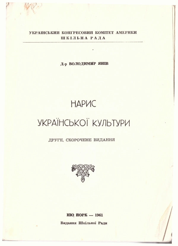 Нарис української культури [Текст] / Д-р Володимир Янів