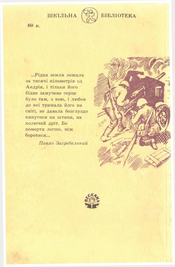 Publication: Київ : «Веселка», 1991Description: 191 с. : іл. ; 200 мм.Language: українська.Country: Україна.ISBN: 5-301-00962-1.Серія: Шкільна бібліотека = Започаткована в 1964 роціУДК: 82-3.161.2Audience: Для старшого шкільного віку.Анотація:...Андрій Коваленко народився і виріс на берегах Дніпра. Мріяв стати вченим. Сімнадцятирічним юнаком добровільно пішов на фронт, тяжко поранений, потрапив у полон і, зазнавши найжорстокіших тортур у гітлерівських таборах смерті, після кількох невдалих втеч у двадцять років здійснив свій останній подвиг.