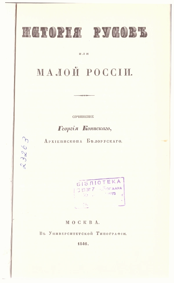Исторія Русовъ или Малой Россіи [Текст] : Сочиненіе Георгія Конискаго, Архіепископа Бѣлорускаго / Георгій Кониський