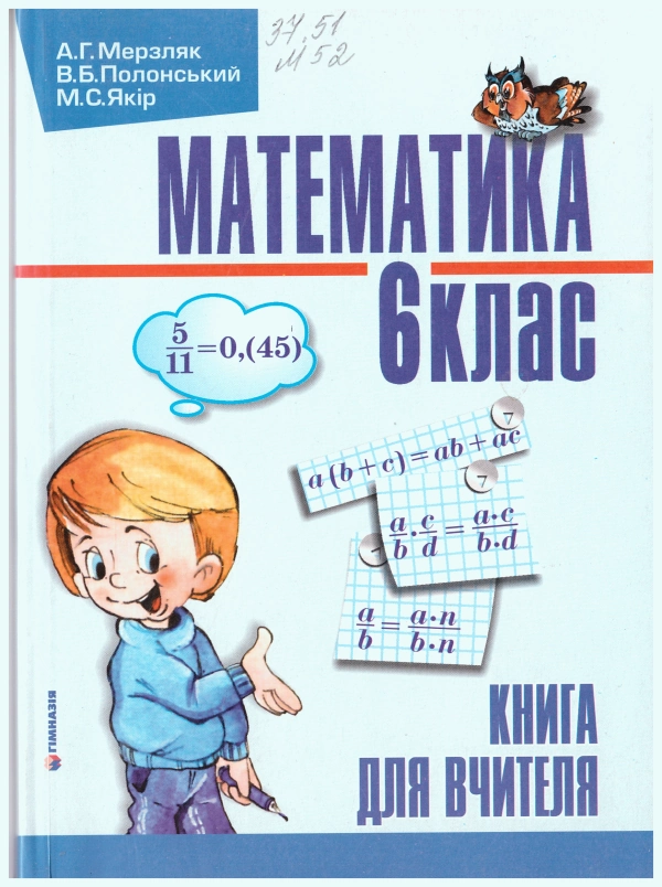 Математика, 6 клас [Текст] : Книга для вчителя / А. Г. Мерзляк, В. Б. Полонський, М. С. Якір