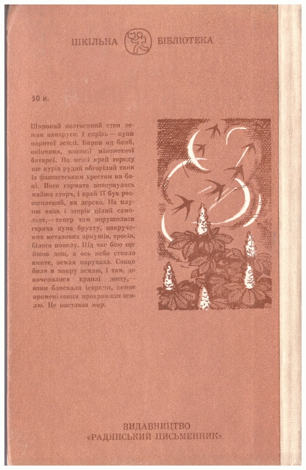 Edition Statement: Тексти друкуються за виданням: Юрій Яновський. Вершники. Мир. К., Рад. письменник, 1976; Твори в 5-ти томах. К., Державне видавництво художньої літератури, 1958, т. 1.Publication: Київ : Радянський письменник, 1982Description: 232 с. : іл. ; 207 мм.Language: українська.Country: Українська РСР.Серія: Шкільна бібліотекаУДК: 82-3.161.2Анотація: У романі «Мир» розповідається про перший післявоєнний рік на звільненій від німецько-фашистських загарбників радянській землі, про відродження села Весела Кам’янка на Україні, про мужність і незламність нашого народу. Подіям у тимчасово окупованому ворогом Києві присвячено оповідання «Київська соната» Тема Великої Вітчизняної війни лягла в основу оповідання «Дівчинка у вінку».